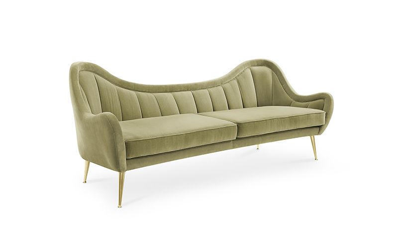 В греческой мифологии Гермес - Бог границ, путешествий и общения. Это послужило источником вдохновения для создания HERMES Sofa, дивана для гостиной, обитого хлопковым бархатом, с ножками из полированной латуни. Это современный бархатный диван середины века, способный преобразить любую комнату.