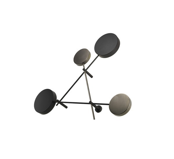 Геометрическая конструкция светильника Iride из линий и кругов напоминает о произведениях абстрактного искусства. Диск излучает светящееся гало, похожее на затмение. Модель выполнена из металла, окрашенного в коричневый и титановый (выделенные серым цветом) цвета.