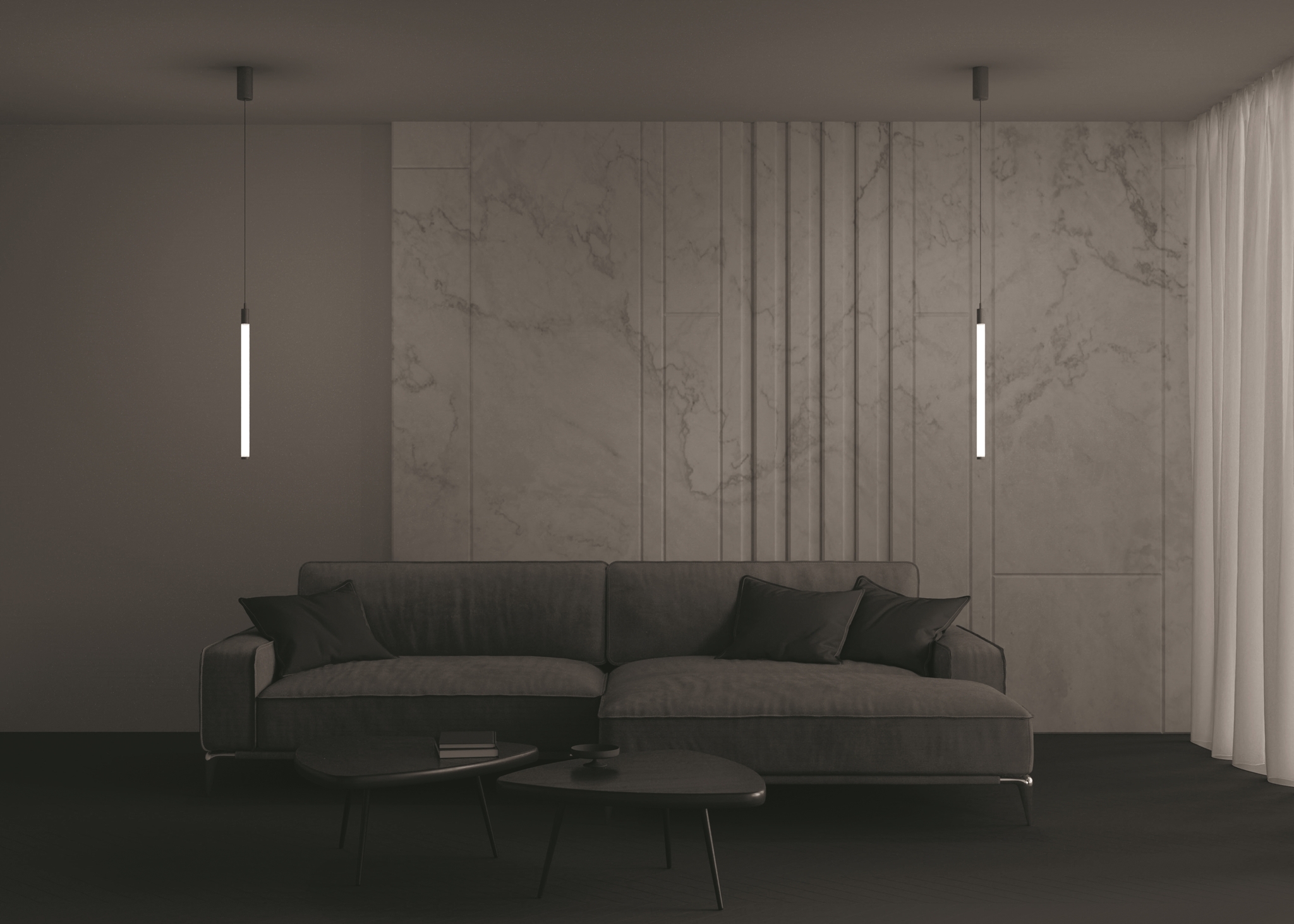 Едва уловимый взглядом светильник серии Ray буквально пронизывает пространство светом. Под корпусом из металла и акрила скрываются мощные SMD-светодиоды. Арматура выполнена из алюминия. Светильники окрашены в черный, белый и цвет матового золота. Тонкий провод добавляет конструкции легкости и регулируется по длине, позволяя расположить светильник на нужной высоте. Разная длина корпусов позволит составить индивидуальную композицию для украшения интерьера.