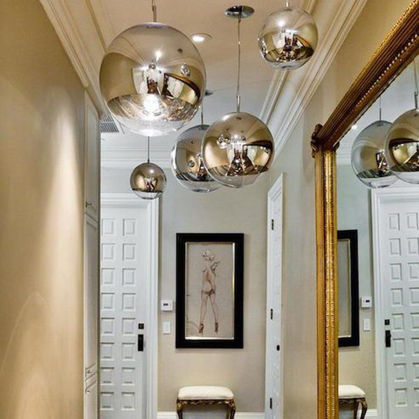 - Том Диксон Mirror Ball восхищает идеальной сферической формой и невероятным зеркальным блеском , напоминающий снаряжением инопланетного коробля. Внизу шар прозрачный , что создало направленный световой поток.